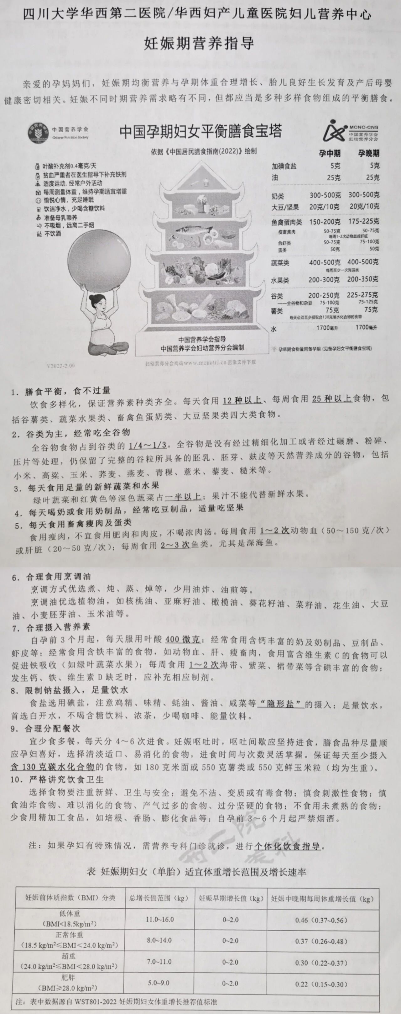 我把我孕期挂华西营养门诊的饮食建议分享给大家,建议孕期一日三餐按照这样吃: