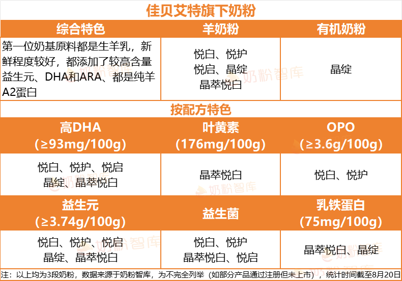 佳贝艾特作为全球羊奶粉第一品牌,每款奶粉都是纯羊乳蛋白配方,如果宝爸宝妈特别注重这些方面,可以重点关注该品牌的奶粉。