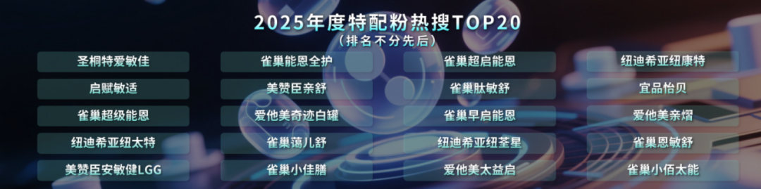 奶粉智库小程序/网数据显示,2025年特配粉综合热度同比增长49%。特配粉是指特殊医学用途配方奶粉,属于特殊医学用途配方食品的范畴。根据《食品安全国家标准特殊医学用途婴儿配方食品通则》(GB 25596-2025),我国特殊医学用途婴儿配方食品主要有无乳糖配方、乳蛋白部分水解配方、早产/低出生体重婴儿配方等。