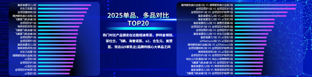 上面这些产品可不是我随机罗列的,而是来自婴童智库&奶粉智库重磅发布的《2025年奶粉智库消费者洞察报告》——该报告显示,2025年度用户对比频次最高的奶粉单品及奶粉组合是这些: