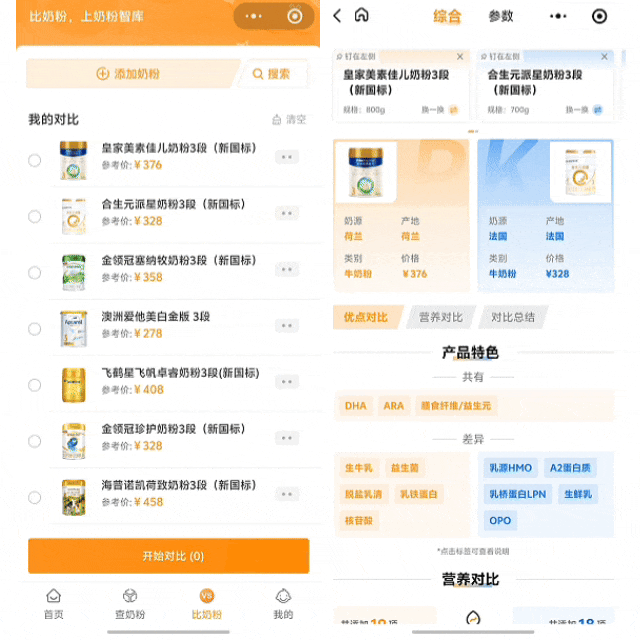 (图源奶粉智库“比奶粉”实操过程)