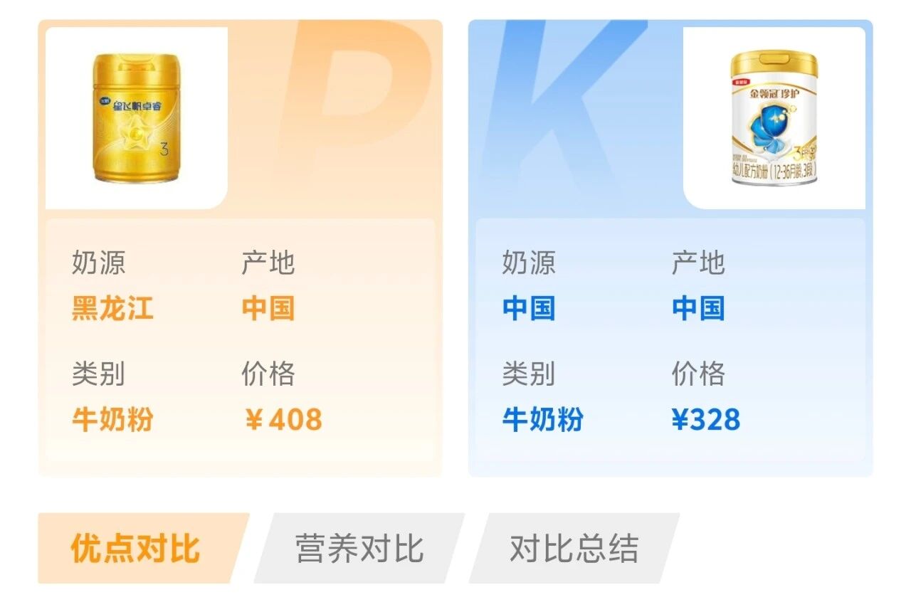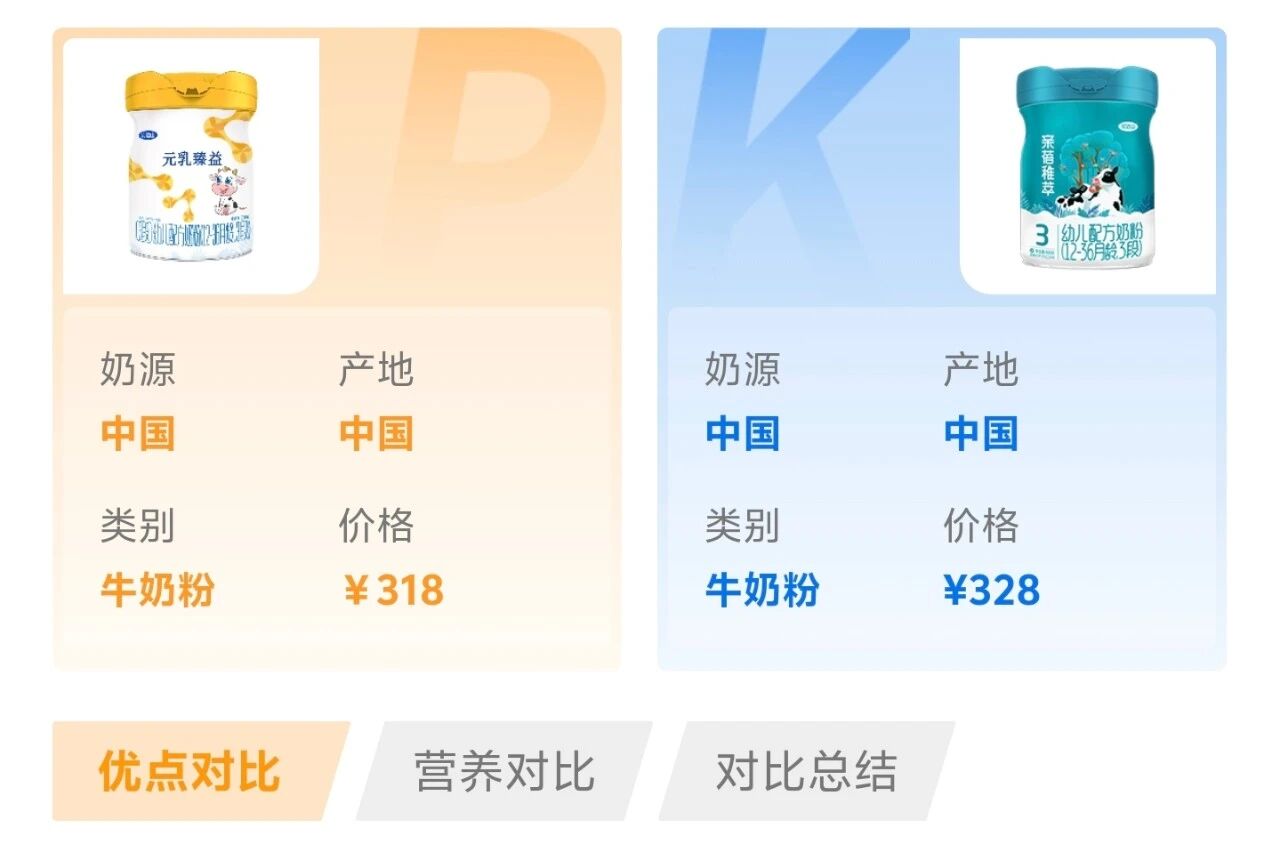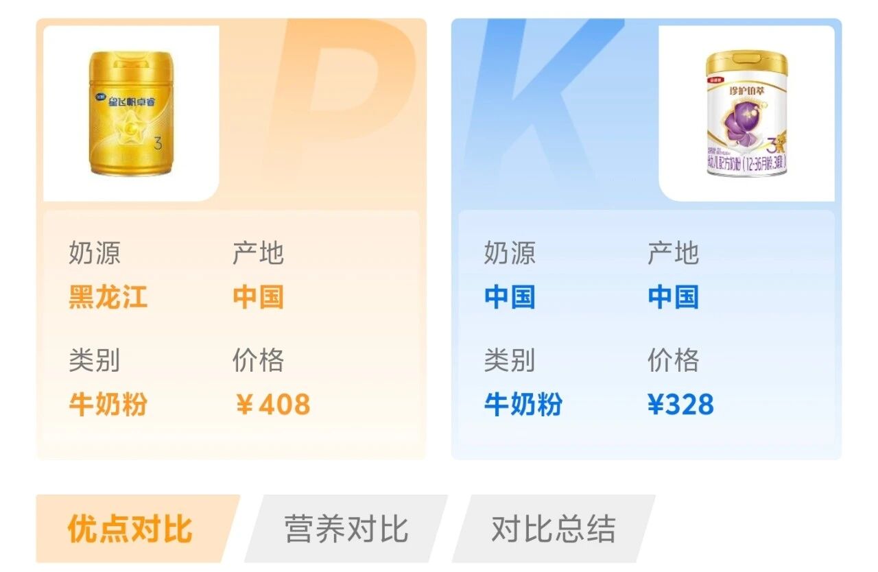 以上便是宝爸宝妈们对比奶粉时最常遇到的四类纠结场景,不同场景都有高频对比的奶粉组合。如果你也有类似的选奶纠结,欢迎使用奶粉智库“比奶粉”工具,你会发现你的纠结能够快速得到专业、客观、全面的对比分析结果,帮助你更高效地选到满意的奶粉。
