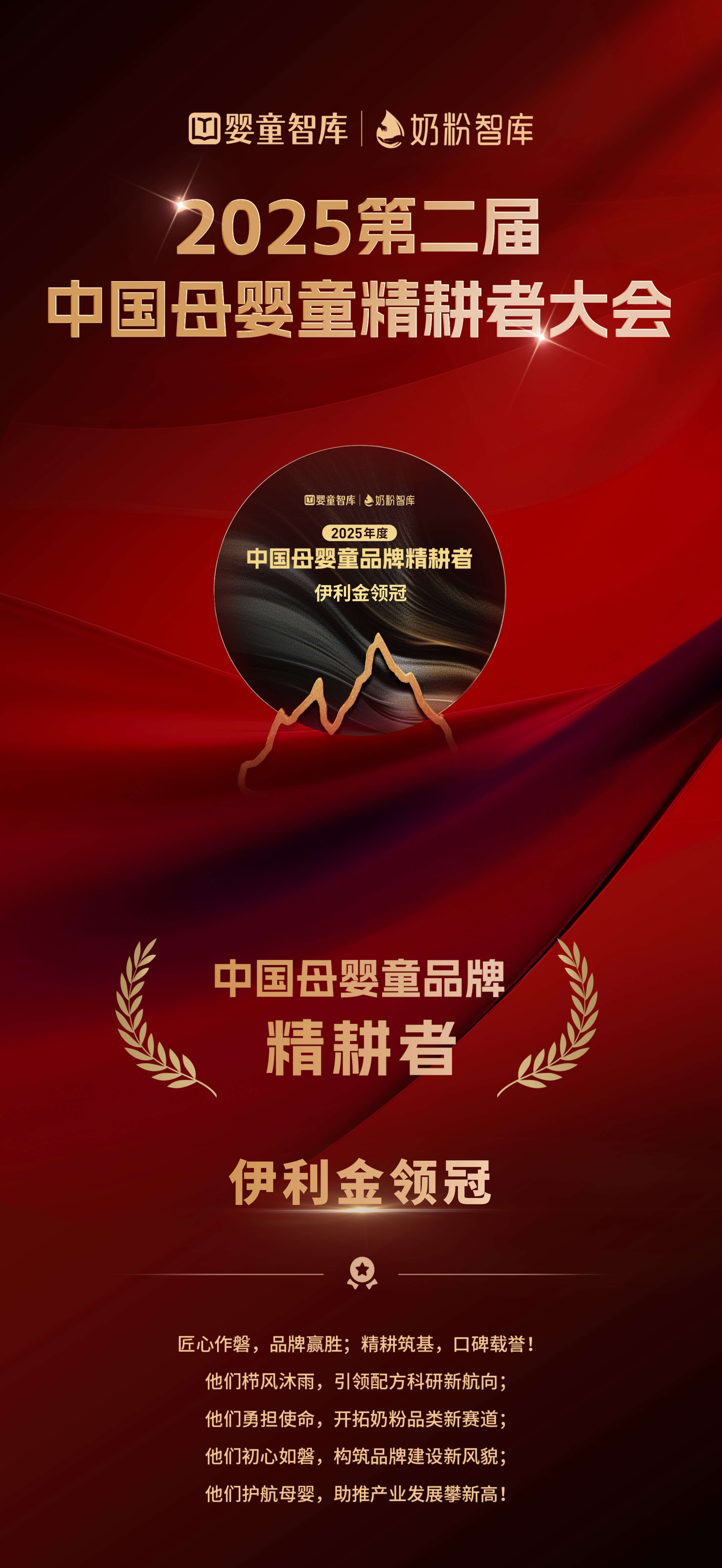 匠心作磐,品牌赢胜;精耕筑基,口碑载誉!他们栉风沐雨,引领配方科研新航向;他们勇担使命,开拓奶粉品类新赛道;他们初心如磐,构筑品牌建设新风貌;他们护航母婴,助推产业发展攀新高!恭喜伊利金领冠荣获“2025年度中国母婴童品牌精耕者”。