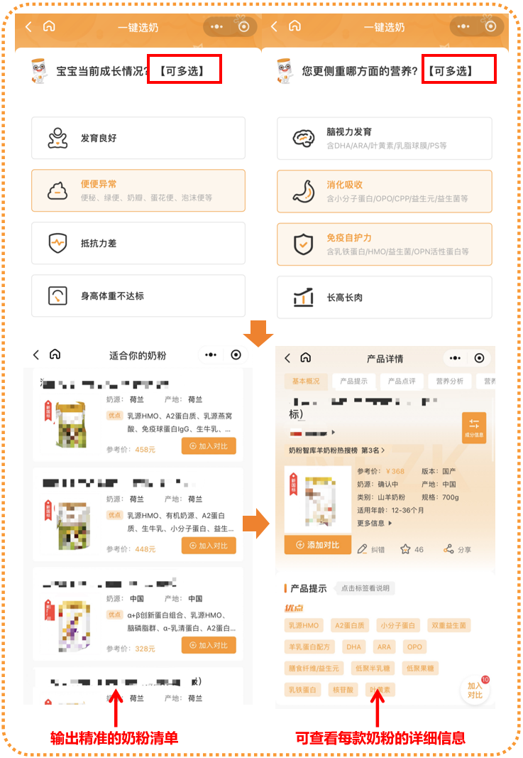 一起来看看面对不同需求的宝宝,“一键选奶(专业版)”如何成为店员的得力助手,高效化解不同场景的选奶难题吧~