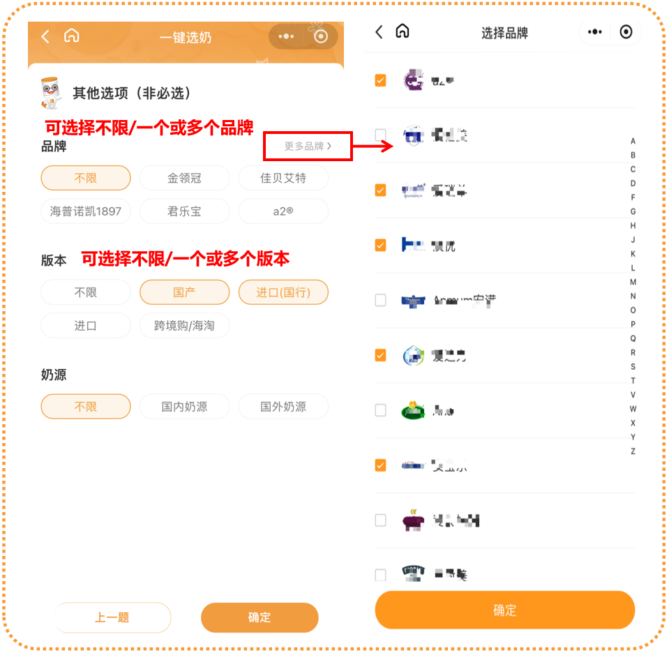 对于对品牌、版本或者奶源有偏好的顾客,如何满足顾客需求的基础上又能聚焦到门店现有品牌呢?使用“一键选奶(专业版)”就能实现!