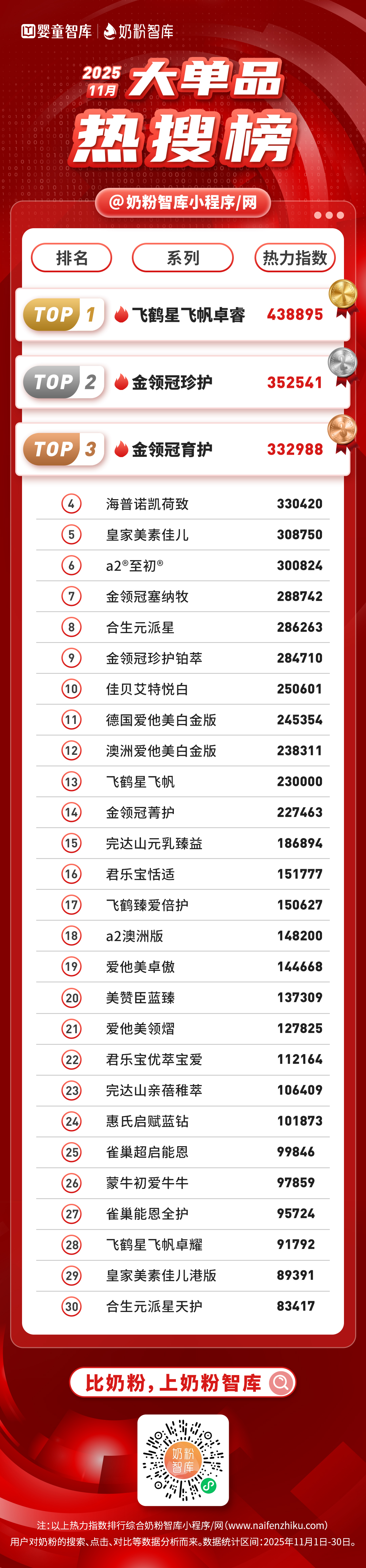 以上就是奶粉智库网2025年11月奶粉大单品热搜榜,
