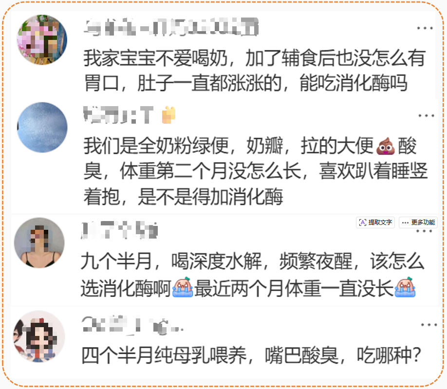 并且打算给自家宝宝用的时候,还会有很多问题,比如“出现哪些现象才考虑给宝宝用消化酶呢?”“这么多种消化酶,宝宝绿便、奶瓣选哪种?”“宝宝积食选哪种?”……