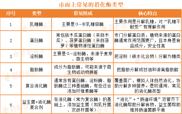 ①宝宝若出现腹胀、腹泻、泡沫便等乳糖不耐受症状,优先选择含有乳糖酶的消化酶,帮助分解奶中的乳糖。