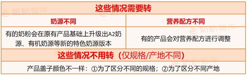 不同版本之间奶源或配方有所不同就需要转奶。