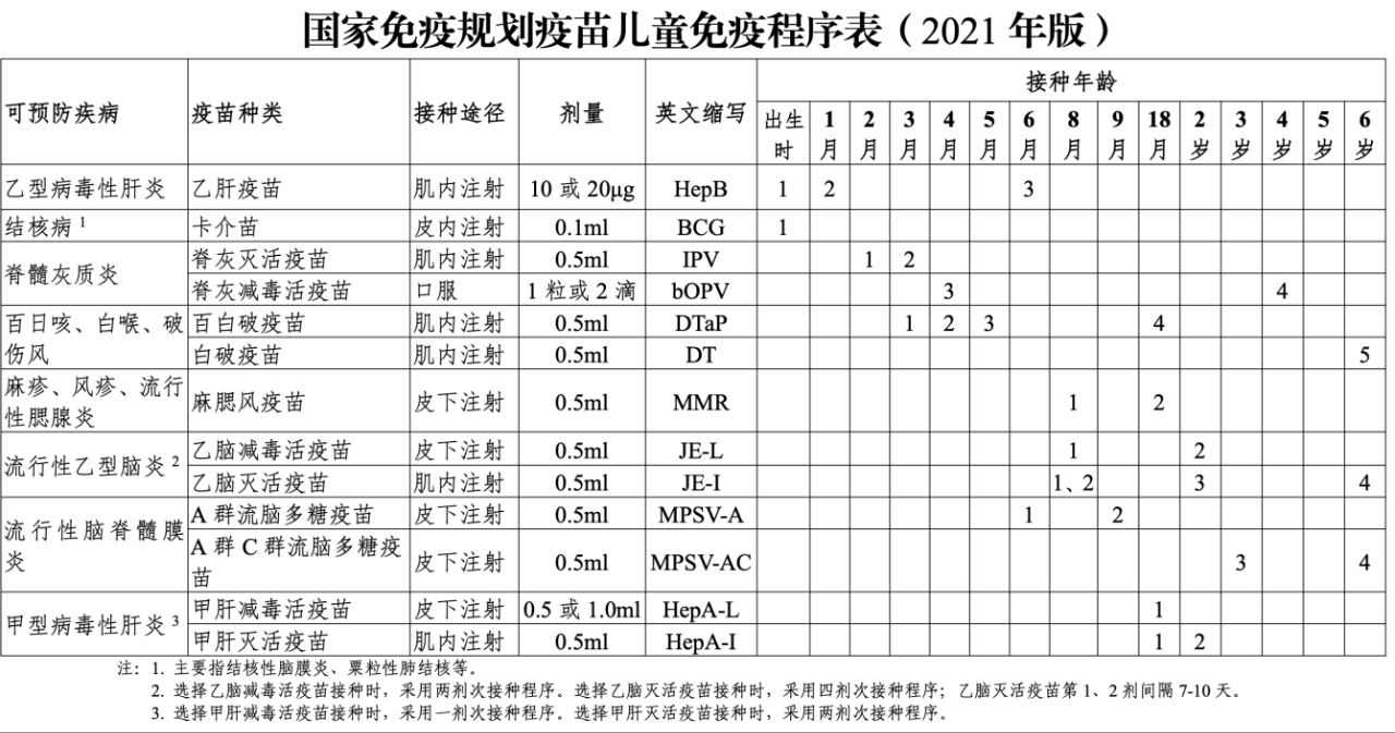 图源:国家免疫规划疫苗儿童免疫程序及说明(2021年版)