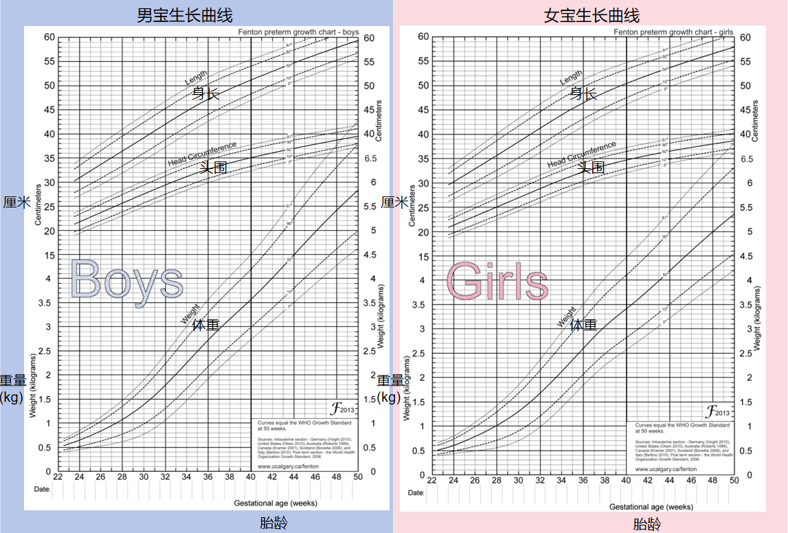 通常来说,早产宝宝或低出生体重儿可以通过喂养早产奶粉尽快长肉肉,追赶正常体重,妈妈可以根据Fenton早产儿生长曲线来判断宝宝的生长是否达标,如果生长曲线达标就可以转回普通奶粉了: