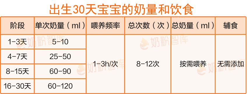 出生30天宝宝的奶量和饮食