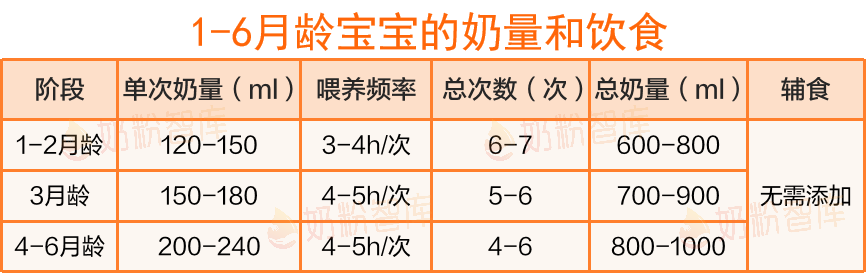 1-6月龄宝宝的奶量和饮食