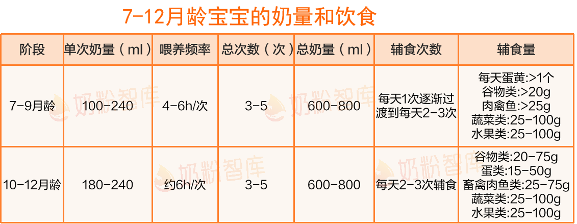 7-12月龄宝宝的奶量和饮食