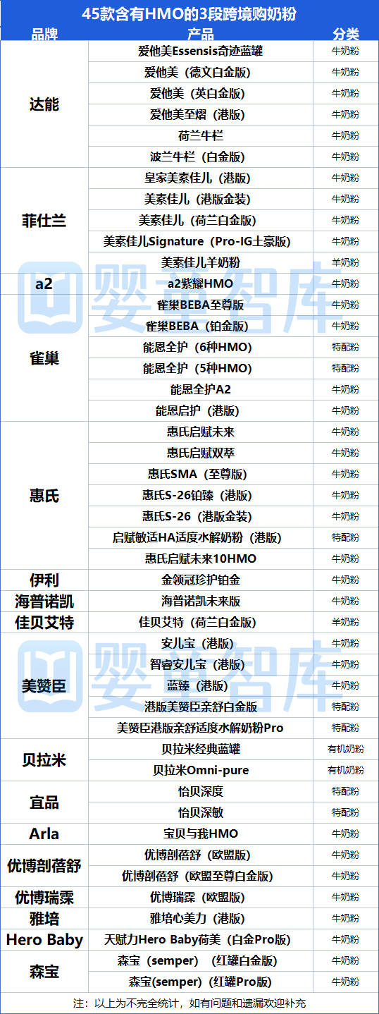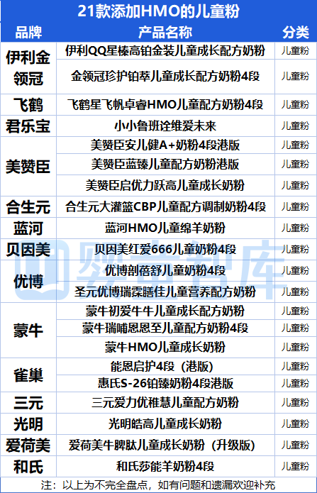 总体来看,HMO的应用已覆盖牛奶粉、羊奶粉、有机奶源奶粉及儿童粉、特配粉等多个品类,产品日趋多样与高端,市场竞争持续升温。