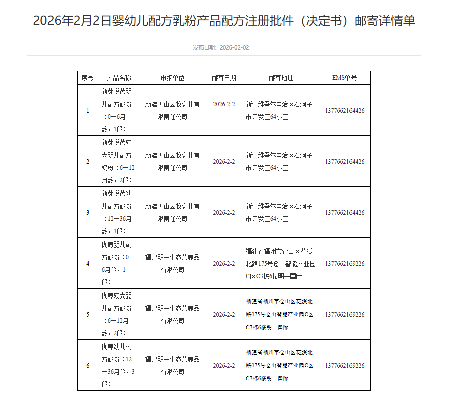 13款婴配粉批件信息发布