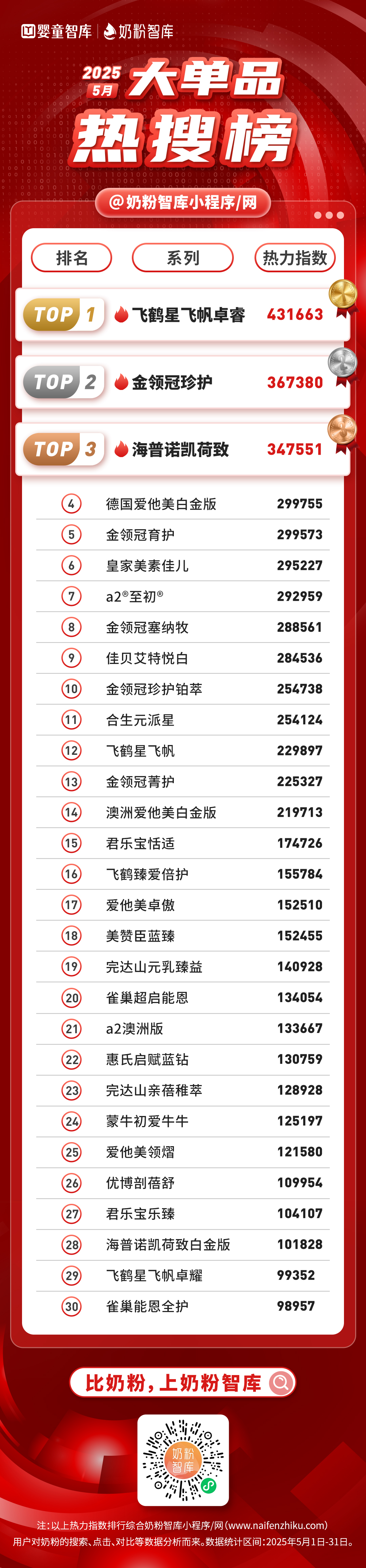 以上就是奶粉智库网2025年5月奶粉大单品热搜榜,