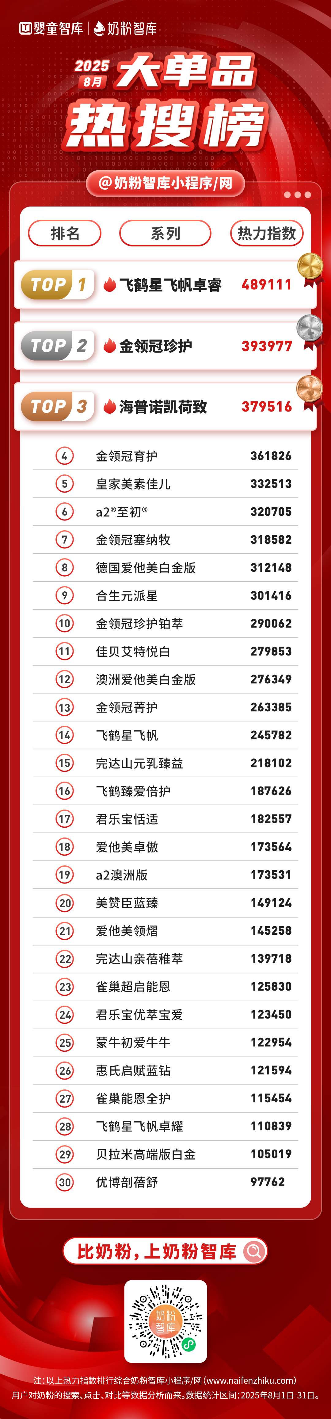 以上就是奶粉智库网2025年8月奶粉大单品热搜榜,