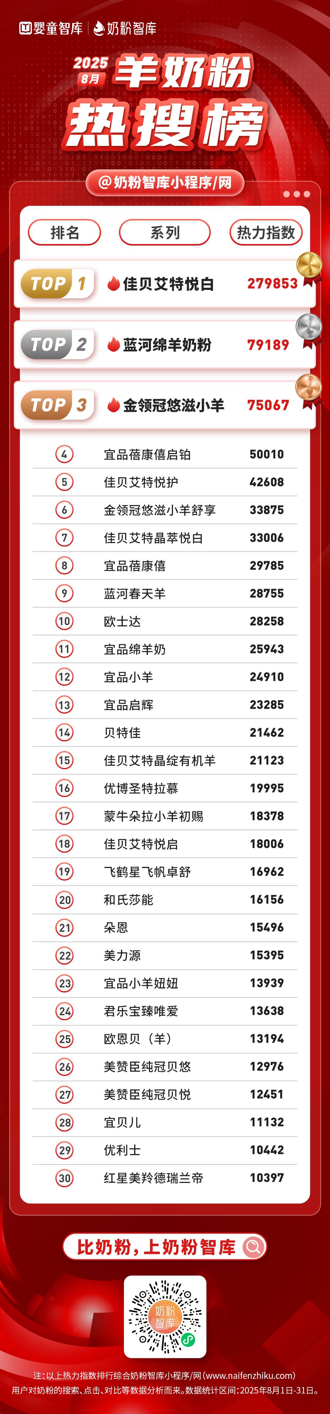 以上就是奶粉智库网2025年8月羊奶粉热搜榜,