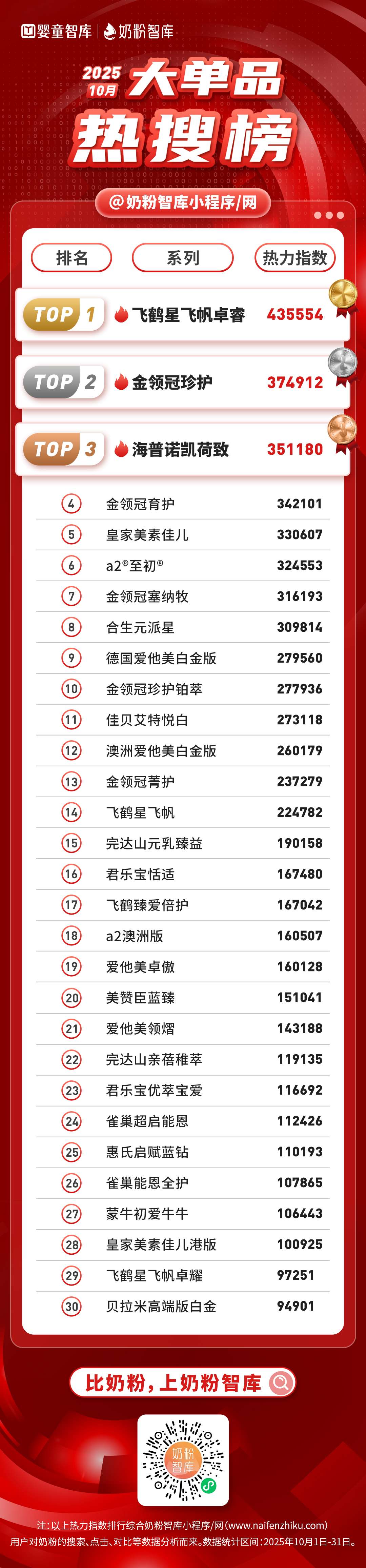 以上就是奶粉智库网2025年10月奶粉大单品热搜榜,