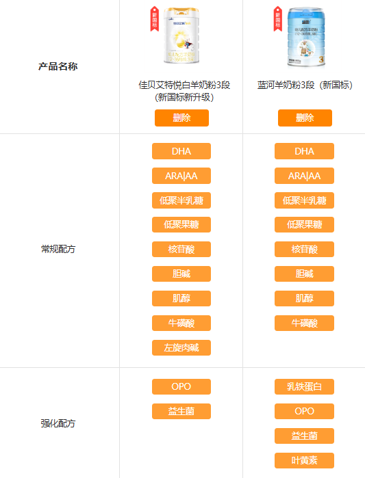 两款奶粉所在的乳企均是具有较强品牌力的乳企,在研发、生产、营销、售后等方面有各自的优势。
